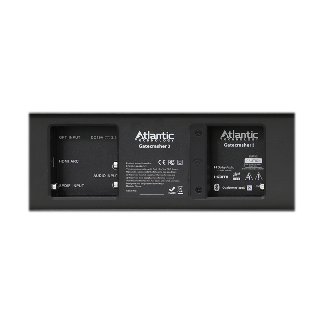Setting up your Gatecrasher 3 PowerBar® System is a breeze. With its HDMI (ARC) input, optical digital audio input, and AUX input, you can easily connect to your TV and enjoy your enhanced audio experience in no time."