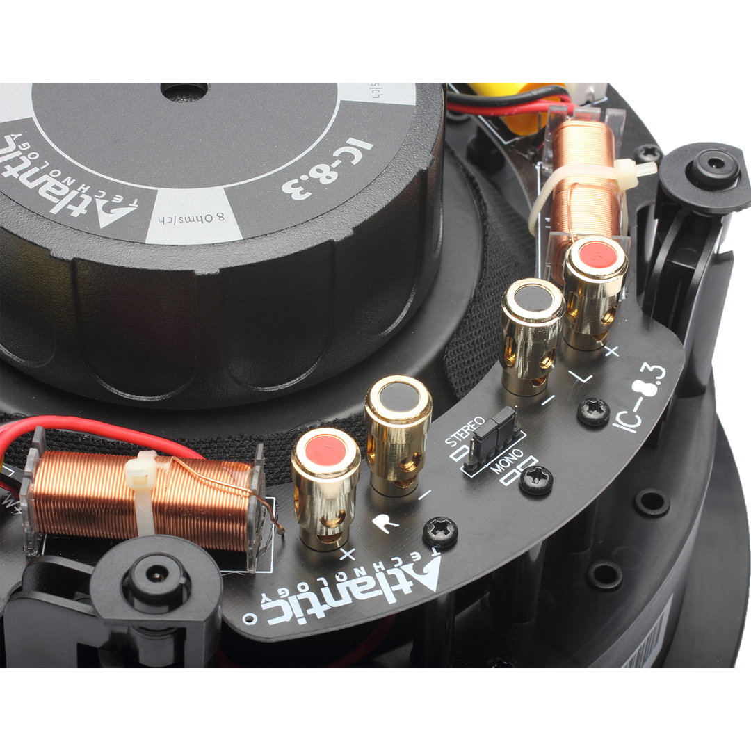 The IC-6.3/8.3 TriMode™ ceiling mount speaker can be configured for mono, single-point stereo, or dipole surround (TriVector™) operation. It also features a bipole/dipole switch, allowing you to customize the audio output to suit your needs.
